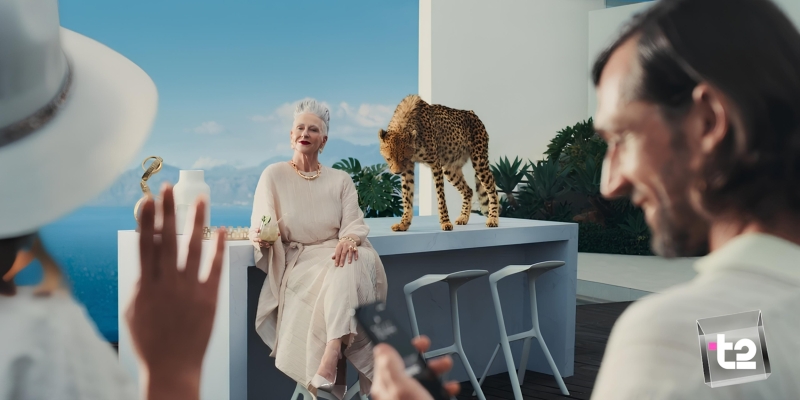 В серии рекламных роликов Т2 решила наглядно продемонстрировать предвкушение выгоды. Это ощущение бренд выразил через отдых на берегу океана и беззаботный танец в компании друзей. Изюминкой этих мечтаний стали экзотические животные. Абонент Виктория проводит время с роскошным ручным гепардом, а герой второго ролика Аркадий танцует в окружении ярких фламинго. Однако героям, как и абонентам оператора, не приходится просто мечтать — их ждёт реальная выгода, которую можно получить, приводя друзей в Т2.