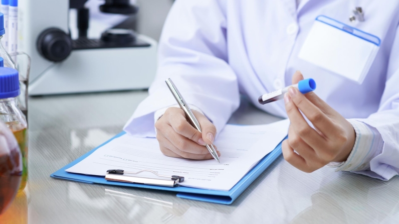 Медицинский работник записывает результаты анализа крови. Архивное фото